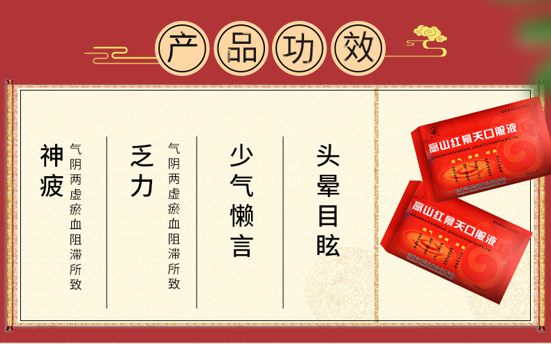 復(fù)方高山紅景天口服液,補腎健脾,養(yǎng)心安神。適用于脾腎不足,心神失養(yǎng)所致頭暈?zāi)垦#成匐涿?,體倦乏力,心悸氣短,失眠多夢;也可用于久病體虛而見上述癥狀者。
